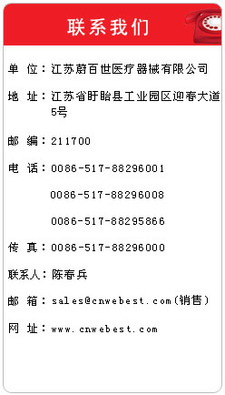 聯系人:陳春兵 地址:江蘇省盱眙縣工業園區迎春大道5號 郵編:211700 互聯網藥品信息服務資格證書號:(蘇)-非經營性-2023-0029 醫療器械投拆舉報電話:12315 電話:0086-517-88296001 88296008 0086-517-88295866 傳真:0086-517-88296000 網址:www.cnwebest_com.townfree.com.cn E-mail:sales@cnwebest_com.townfree.com.cn(銷售) 后臺管理 郵箱登錄 備案號:蘇ICP備17002214號-1 |